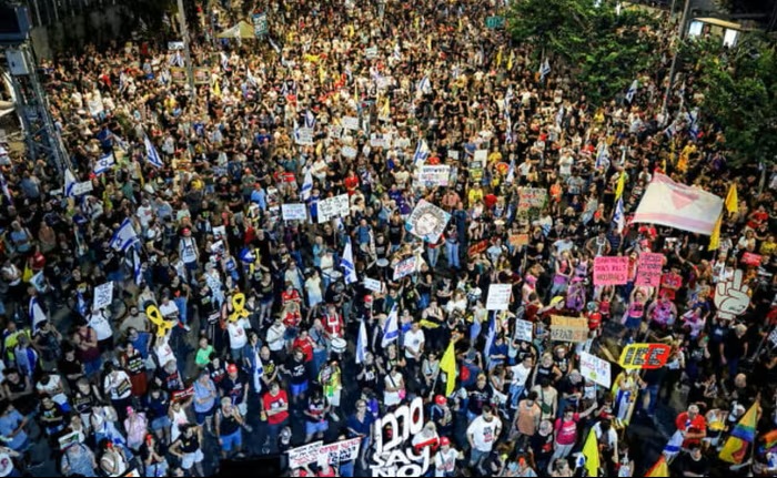 Những người biểu tình Israel kêu gọi Chính phủ hành động để đảm bảo việc thả những con tin bị bắt giữ, trong cuộc biểu tình tại Tel Aviv ngày 23/8. Ảnh: AFP).