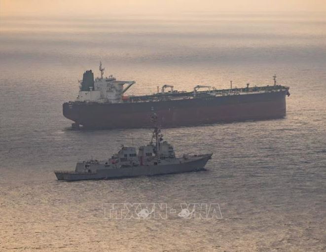 vào cảng của Iran, trong bối cảnh Mỹ mở rộng phong tỏa các tàu thuyền tại eo biển Hormuz, Vịnh Oman ra vùng biển quốc tế, ngày 24/4/2026. Ảnh: REUTERS/TTXVN