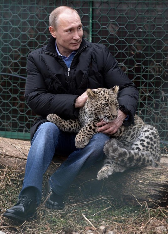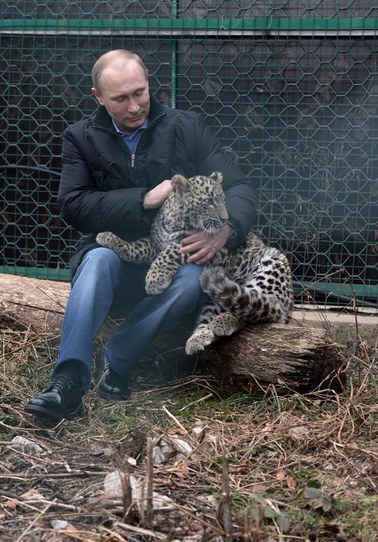 Nhà lãnh đạo Nga mạo hiểm bước vào chuồng báo, để nó nằm trên đầu gối và xoa đầu âu yếm. “Chúng tôi mến nhau” – vị tổng thống hài hước chia sẻ và cho biết thêm: "Chúng tôi quyết định khôi phục loài báo Ba Tư vì thế vận hội. Hay là nói thế này, vì thế vận hội mà chúng tôi hồi sinh vài phần của tự nhiên đã bị hủy hoại".
