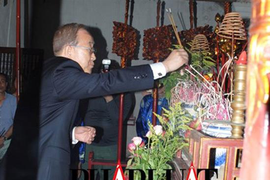 Ông Ban Ki-moon thắp hương lên bàn thờ họ Phan Huy.