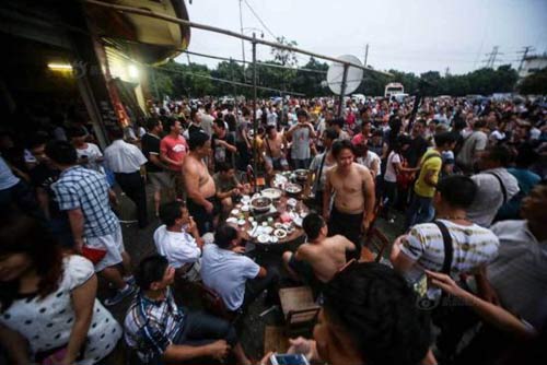 Tuyến phố Jiangbin ở thành phố Ngọc Lâm đông nghịt người vào tối thứ Bảy, khi lễ hội thịt chó thường niên chính thức diễn ra ở đây trong bầu không khí đối đầu căng thẳng giữa các nhà bảo vệ động vật với người dân địa phương mê thịt chó.