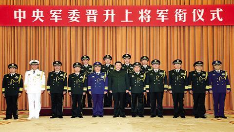 Ngày 11-07, tại lễ đường Bát Nhất ở thủ đô Bắc Kinh, quân ủy Trung ương Trung Quốc đã long trọng tổ chức nghi lễ trao quân hàm Thượng tướng cho 4 sỹ quan cấp cao của PLA. Đích thân chủ tịch quân ủy Trung ương Trung Quốc - Tập Cận Bình tới dự và trao quân hàm cho số tướng lĩnh này.