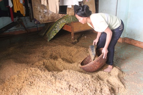 Cũng theo ông Lâm, đợt lũ lịch sử vừa rồi đã cuốn trôi của gia đình hơn 150 con gà ăn thịt và 1 con lợn chuẩn bị làm đám cưới cho con trai cả trong tháng 10 này, lúa và 3 sào ao cá đang độ vào mùa thu hoạch.