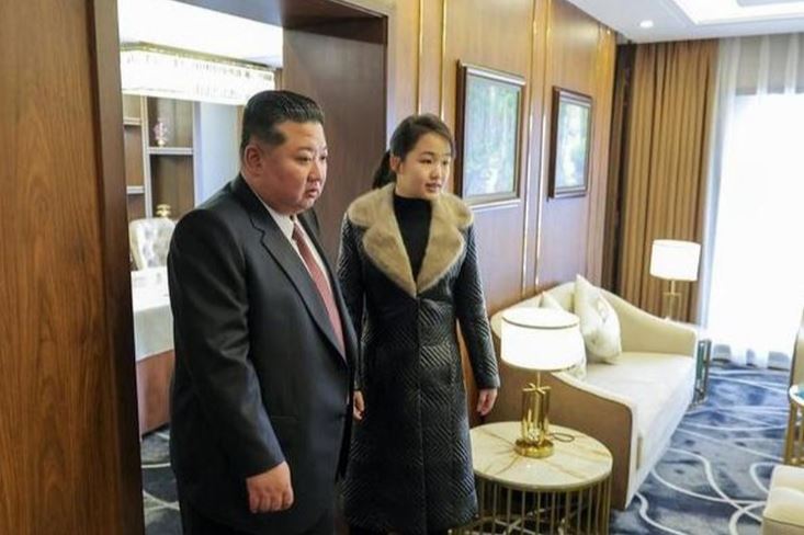 Lãnh đạo Triều Tiên Kim Jong-un (bên trái) và con gái Ju-ae tham quan hai khách sạn Ikkal