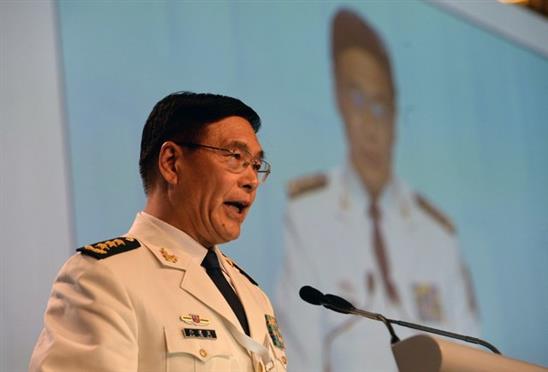 Đô đốc Tôn Kiến Quốc, Phó Tổng tham mưu trưởng Quân đội Trung Quốc ngang nhiên tuyên bố đầy thách thức: “Trung Quốc không gây rắc rối nhưng Trung Quốc cũng không ngại rắc rối” tại Đối thoại Shangri-la 15 Ảnh: AFP.