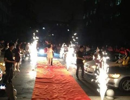 Màn cầu hôn khá hoành tráng của chàng trai nhà giàu với sự “tung hô” của 11 chiếc xe BMW đã khiến cho khu KTX ĐH Sư phạm Hồ Nam (TQ) được phen náo loạn.