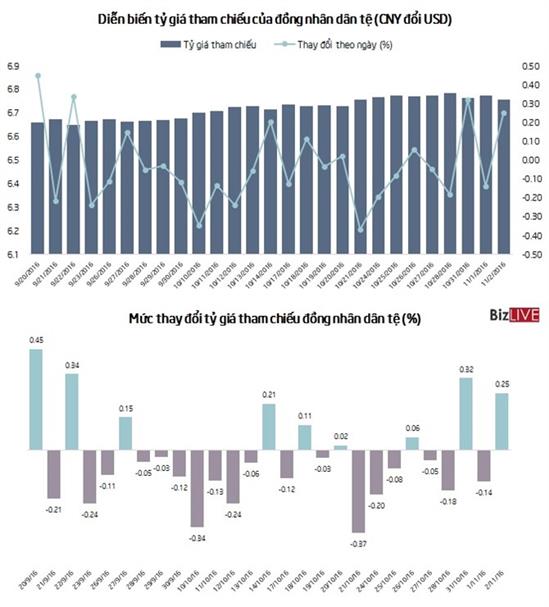 Ngày 2/11, Ngân hàng Trung ương Trung Quốc ấn định tỷ giá tham chiếu của đồng nhân dân tệ ở mức 6,7562 đổi 1 USD, tương đương mức tăng giá 0,25% so với chốt phiên trước.