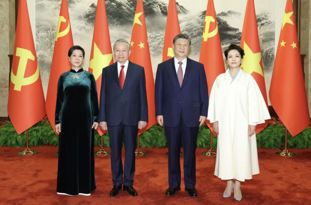 Tổng Bí thư, Chủ tịch nước Tô Lâm và Phu nhân chụp ảnh chung cùng Tổng Bí thư, Chủ tịch nước Trung Quốc Tập Cận Bình và Phu nhân. Ảnh: Nhân dân Nhật báo điện tử.