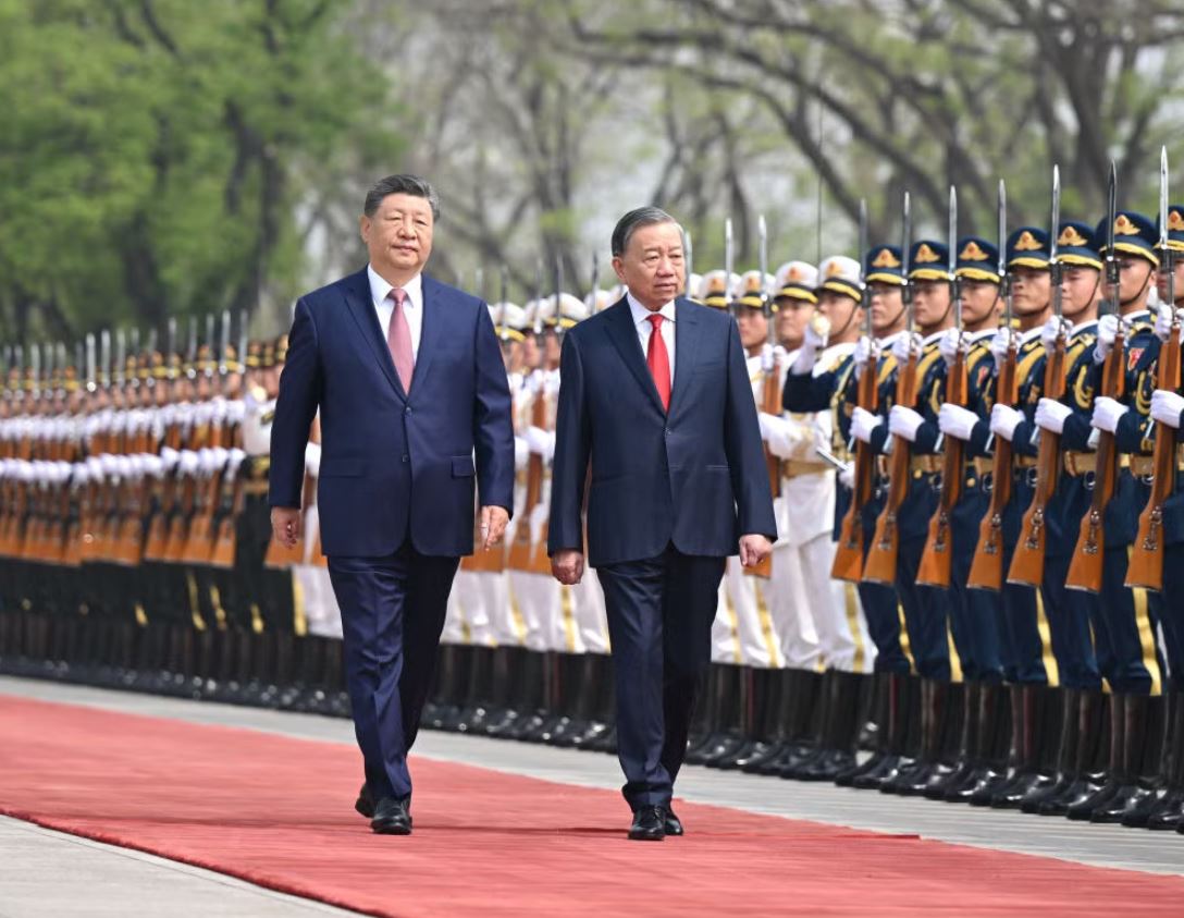 Tổng Bí thư, Chủ tịch nước Tô Lâm và Tổng Bí thư, Chủ tịch nước Trung Quốc Tập Cận Bình duyệt Đội danh dự Quân giải phóng Nhân dân Trung Quốc tại Lễ đón ngày 15/4/2026.