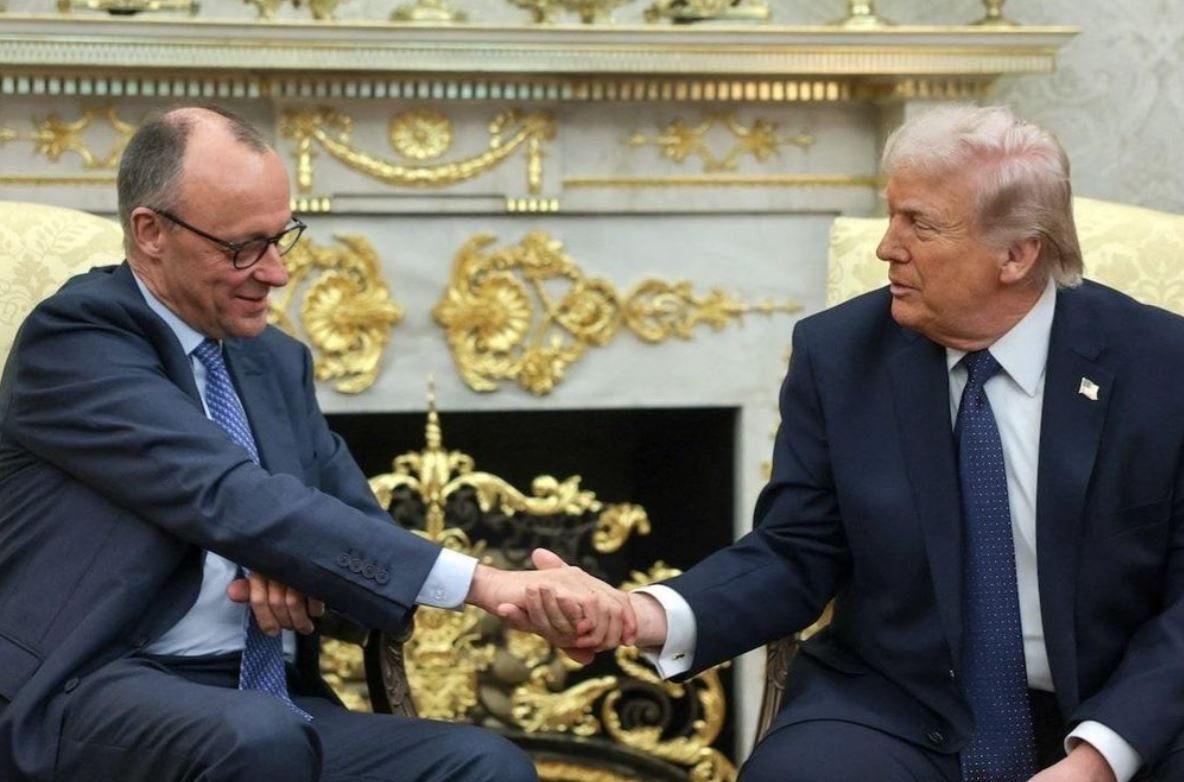 Tổng thống Mỹ Donald Trump bắt tay Thủ tướng Đức Friedrich Merz tại Phòng Bầu dục,