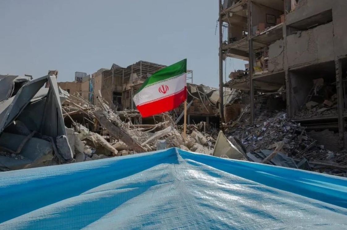 Quốc kỳ Iran xuất hiện tại hiện trường một đồn cảnh sát ở Tehran bị trúng đòn không kích