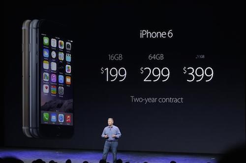 iPhone 6 có giá khởi điểm 199 USD cho bản 16 GB, bản 64 GB có giá 299 USD còn bản 128 GB là 399 USD kèm hợp đồng thuê bao 2 năm. Còn iPhone 6 Plus có giá khởi điểm 299 USD. Máy sẽ được xuất xưởng ngày 19/9 và cho đặt hàng từ 12/9.