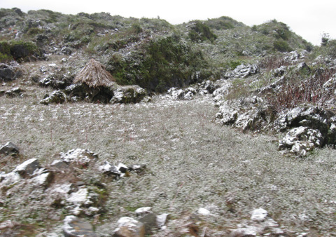 Trong suốt đêm 12 và sáng 13/1, trên địa bàn huyện Mèo Vạc có mưa phùn cộng với thời tiết giá rét nên tại nhiều xã núi đá đã xuất hiện tuyết rơi trên diện rộng.