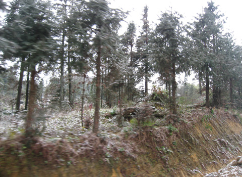 Tuyết rơi trắng các nương ngô và sườn núi