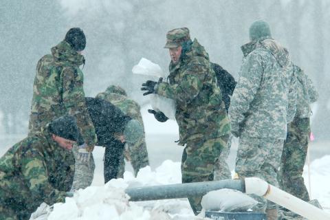 Quân Ukraine đào công sự trong mưa tuyết chuẩn bị đối phó với các cuộc phản công từ miền Đông