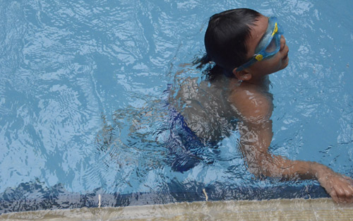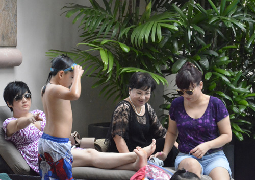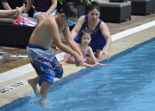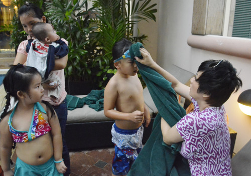 Những hình ảnh vui chơi của vợ con Bằng Kiều tại hồ bơi: