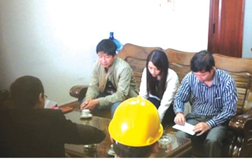 Nhóm phóng viên VTV rởm đang nhận tiền tại Công ty cổ phần Kính nổi Chu Lai.