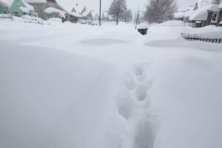 Dấu chân in hằn trên con phố sau khi tuyết rơi dày đêm qua thêm ít nhất 45 cm, cộng dồn với 90 cm tuyết đã rơi vào cuối tuần trước tại Buffalo, bang New York (Hoa Kỳ). © AP Photo / Carolyn Thompson