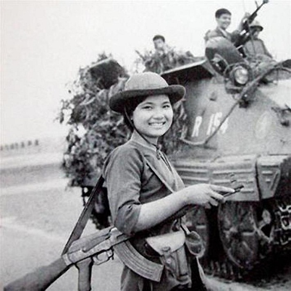 Người nữ giải phóng quân nở một nụ cười tươi rói trong đợt tiến công cuối cùng vào giải phóng Sài Gòn. Công cuộc thống nhất đất nước có sự đóng góp không nhỏ của những người phụ nữ cầm súng, mà trong số họ có nhiều người đã nằm lại chiến trường.