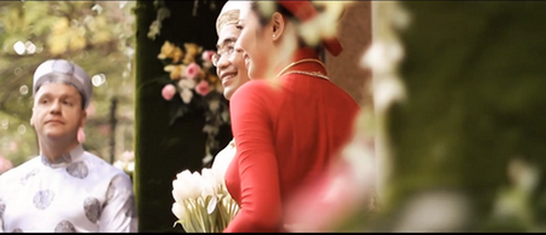 Michael Sestak (trái) dự lễ cưới của vợ chồng Võ Tăng Bình (phải) - Ảnh: VietWeek