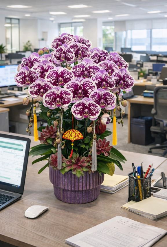 Gợi ý hoa Tết: Lan hồ điệp màu vàng hoặc tím. Vẻ đẹp vương giả, đài các của loài hoa này hoàn toàn tương xứng với vị thế và sự thăng hoa của bạn lúc này.