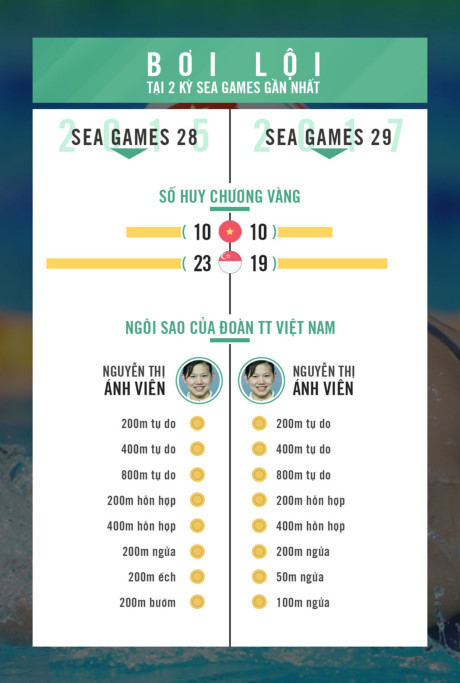 Nguyễn Thị Ánh Viên vẫn là VĐV chủ lực của bơi lội Việt Nam nói riêng và thể thao Việt Nam nói chung tại SEA Games. Đồ họa: Trí Mai