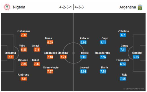 Nigeria từng 4 lần đối đầu với các đại diện của Nam Mỹ ở các kỳ World Cup trước đây và họ đều là người phải nhận thất bại. Lối đá hoa mỹ đậm chất kỹ thuật chính là khắc tinh của trường phái bóng đá chuyên về thể lực. Trước thềm World Cup, Argentina cũng đã chọn 1 đối thủ có lối đá tương tự Nigeria là Trinidad & Tobago. Kết quả trận đấu đó Albicelestes đã có chiến thắng với tỉ số 3-0! Đêm nay, Messi và các đồng đội vẫn phải chiến đấu vì ngôi đầu bảng.