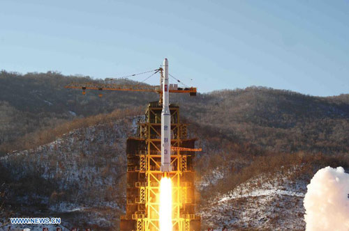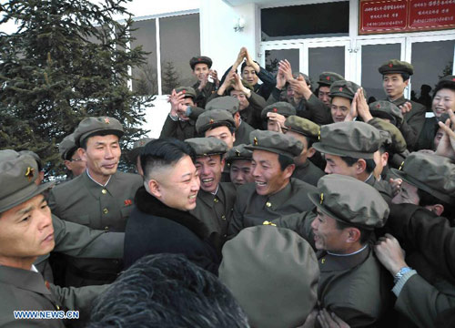 Kim Jong-un và các nhà lãnh đạo cấp cao của Triều Tiên ăn mừng cùng người dân, sau khi Bình Nhưỡng phóng tên lửa thành công và đưa vệ tinh Kwangmyongsong-3 vào quỹ đạo.