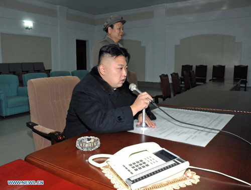 Kim Jong-un vui mừng nghe điện sau khi tên lửa Unha-3 đưa thành công vệ tinh lên quỹ đạo.