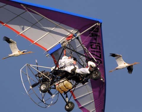 Từng được biết tới với những hình ảnh đầy dũng khí như săn gấu, phóng lao hoặc bắt cá voi, mới đây, tổng thống Nga Vladimir Putin lại tiếp tục chinh phục thử thách mới: cưỡi tàu lượn, dẫn đàn sếu trắng bay đi tránh rét.