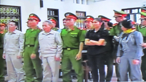 Các bị cáo trong gia đình Đoàn Văn Vươn tại phiên toà - Ảnh chụp qua màn hình