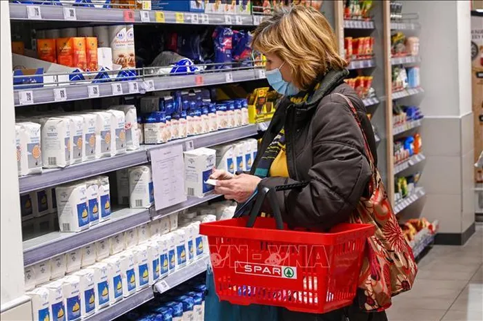 Khách hàng chọn mua đồ tại siêu thị ở Budapest, Hungary ngày 1/2/2022. Ảnh: AFP/TTXVN