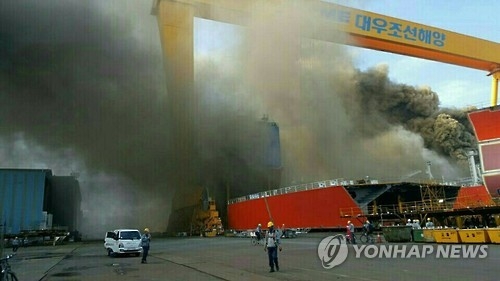 Theo các nhà chức trách địa phương xác nhận, đám cháy được bốc lên từ xưởng đóng tàu của công ty Daewoo Shipbuilding & Marine Engineering Co thuộc khu vực này.