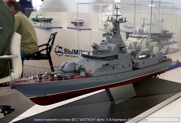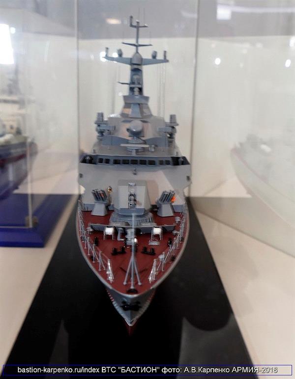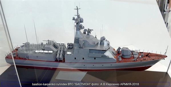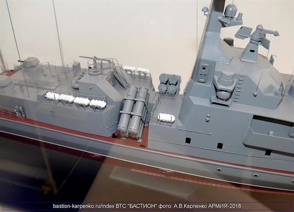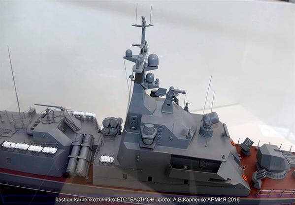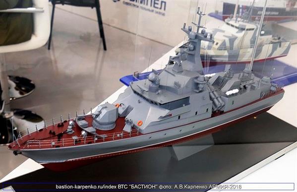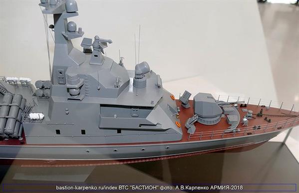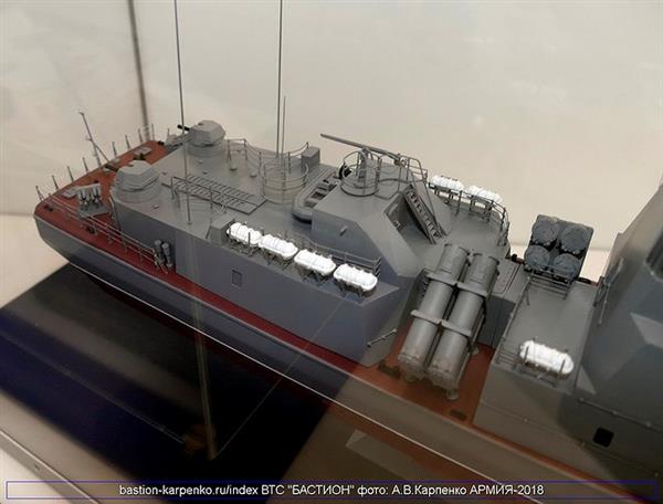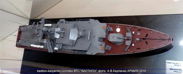 Trong khuôn khổ Triển lãm quân sự quốc tế Army 2018, Nga đã lần đầu tiên trưng bày mô hình chi tiết của tàu hộ vệ tên lửa cỡ nhỏ Molniya 1241.8 nâng cấp.