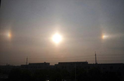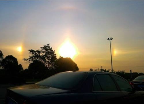 Hiện tượng lạ làm dấy lên sự quan tâm của nhiều người dân. Các bức ảnh chụp lại cảnh tượng "3 mặt trời" xếp hàng trên bầu trời nhanh chóng lan đi như virus trên mạng Internet của Trung Quốc. Nhiều người hoang mang cho rằng, hiện tượng này có liên quan đến lý thuyết ngày tận thế của thế giới.