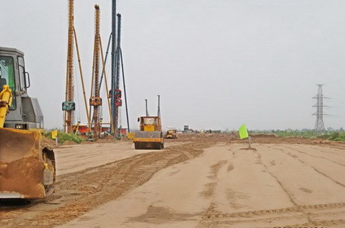 Trên công trường cao tốc Hà Nội- Hải Phòng . Ảnh: Vidifi