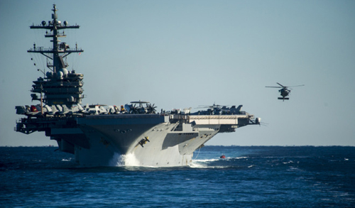 Ưu thế quân sự thông thường lớn nhất của Mỹ là một đội tàu gồm 19 tàu sân bay, so với tổng số 12 tàu sân bay của tất cả các nước còn lại trên thế giới. Các tàu sân bay cỡ lớn này cho phép Mỹ thiết lập các căn cứ hoạt động ở phía trước tại bất cứ nơi nào và triển khai sức mạnh trên toàn thế giới.