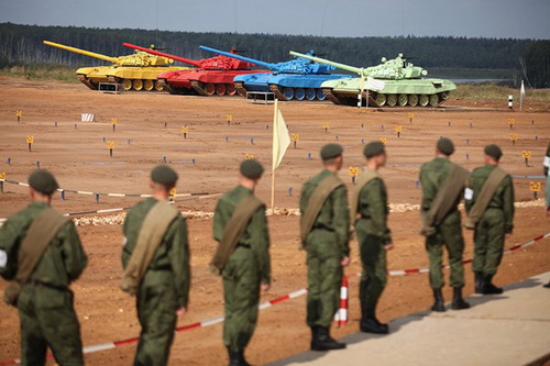 Từ hôm nay 1.8, cuộc tranh tài quân đội thế giới (ARMI 2015) chính thức diễn ra tại Nga với phần mở đầu là cuộc thi xe tăng (tank biathlon) ở Alabino (Moscow) với sự tham dự của quân đội 13 nước. Loại xe tăng T-72B (Việt Nam có trang bị) được nhiều nước chọn để thi đấu.