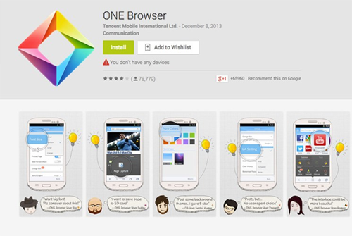 ONE Browser là trình duyệt web nhanh, đẹp mắt và miễn phí trên điện thoại, chuẩn nén hình ảnh và tối ưu hóa trang web. Chức năng tuyệt vời khác đó là hiển thị trang tốt hơn, giao diện xem trang web thông minh và việc tải file về khắc phục lỗi ngắt kết nối.