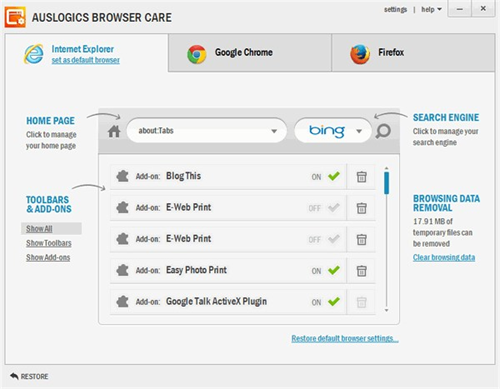 Đúng như tên gọi, AllinOne Browser là trình duyệt chứa những tiện ích thiết yếu mà chắc chắn bạn sẽ cần đến khi truy cập web. Tính năng vượt trội của Allinone bao gồm: quản lý tập tin tải về, nghe nhạc đa phương tiện, chế độ toàn màn hình, hỗ trợ đọc tập tin PDF, duyệt web riêng tư.
