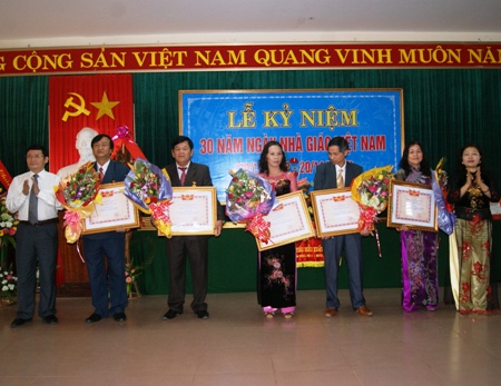 Trao thưởng nhiều danh hiệu cao quý cho các Nhà giáo ưu tú trong buổi kỷ niệm 30 năm ngày Nhà giáo Việt Nam. (Ảnh: Đăng Đức)