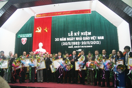 Sáng 19/11, tại Hội trường ĐH Huế đã diễn ra lễ gặp mặt nhân Ngày Nhà giáo Việt Nam và trao tặng danh hiệu Nhà giáo Nhân dân, Nhà giáo ưu tú năm 2012