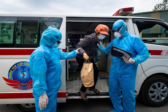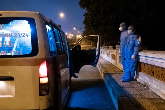 Xe cấp cứu dừng trước cửa nhà, chờ cán bộ y tế phường mang giấy tờ chuyển người nghi nhiễm đến Bệnh viện Đức Giang cách ly. Vài người hàng xóm hiếu kỳ nhìn theo "những người ngoài hành tinh". "Mặc kín mít một màu xanh từ đầu đến chân, ngày đầu mọi người còn trêu nhau nhìn như phi hành gia", lái xe Thành nói.
