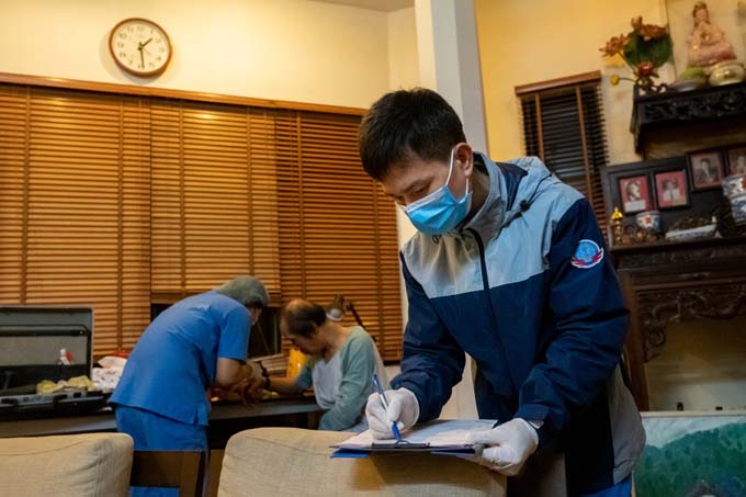 Gác máy, anh Tân đưa tay ấn chuông. Cuộc điện thoại thứ 50 trong ca trực của anh báo có người nghi nhiễm Covid-19.