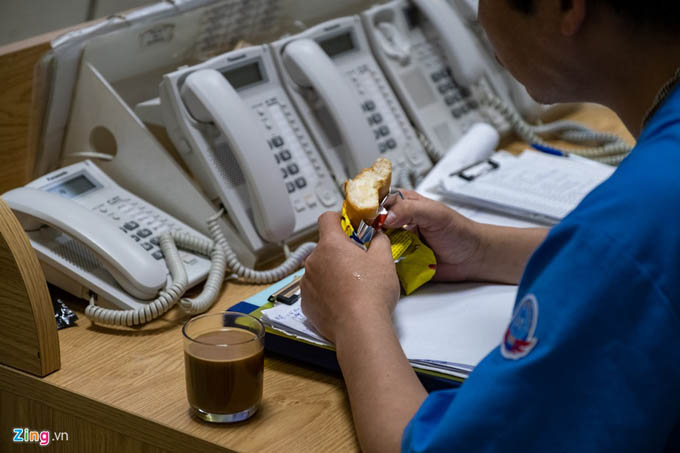 Chục ngày nay, chiếc ghế ngủ được gấp ngay ngắn ở góc phòng trực. Chị Huyền, tổng đài viên, cho biết: “Bình thường mỗi khi có ai mệt thì nằm tạm đó ngủ. Hai người còn lại sẽ thức trực thay, rồi cứ luân phiên nhau như vậy”.