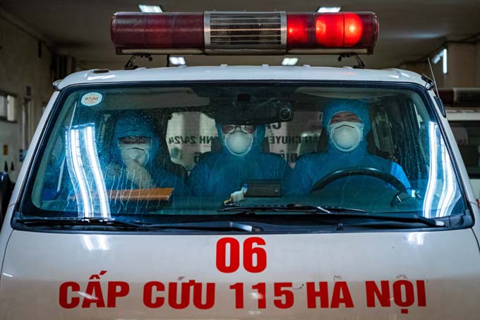Là một trong những lực lượng tiếp xúc ban đầu với người nghi nhiễm, các bác sĩ, điều dưỡng, lái xe tại Trung tâm cấp cứu 115 Hà Nội ngày đêm chuyên chở hàng trăm người đến nơi cách ly, đối diện với nhiều rủi ro và thách thức.