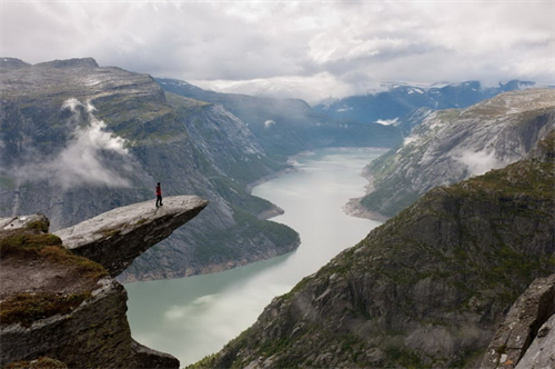 Trolltunga Cliff ở Na Uy. Trolltunga Cliff là một “lưỡi đá” theo chiều ngang “treo” lơ lửng tại Skjeggedal, Na Uy.