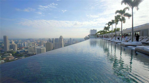 Hồ bơi trên tầng thượng tại khách sạn Marina Bay Sands ở Singapore