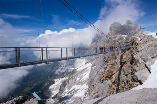 Du khách muốn đến Nấc thang Dachstein, trước tiên, phải vượt qua cây cầu cao nhất của Áo, dài 100 m.
