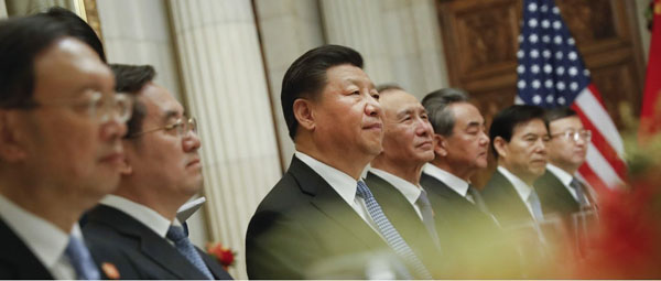 Chủ tịch Trung Quốc Tập Cận Bình và phái đoàn Trung Quốc tại cuộc gặp. Ảnh: AP.